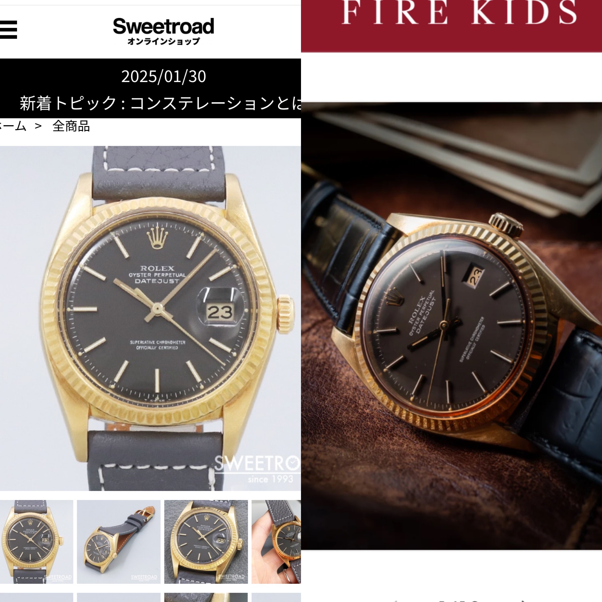 ダークグレーの文字盤とゴールドケースのロレックスデイトジャスト